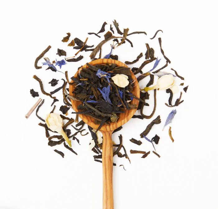 Ingredients: Jasmine Green Tea, Kenyan Purple Tea, Jasmine Blossoms, Cornflower Blossoms.